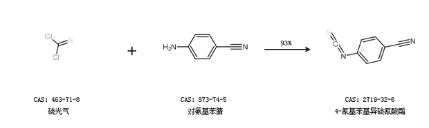 1.通過(guò)硫光氣和對(duì)氨基苯腈合成4-氰基苯基異硫氰酸酯,收率約93%;