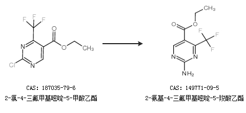 1.通過2-氯-4-三氟甲基嘧啶-5-甲酸乙酯合成2-氨基-4-三氟甲基嘧啶-5-羧酸乙酯
