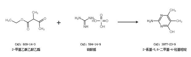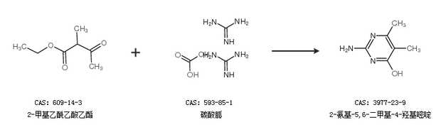 2.通過2-甲基乙酰乙酸乙酯和碳酸胍合成2-氨基-5,6-二甲基-4-羥基嘧啶