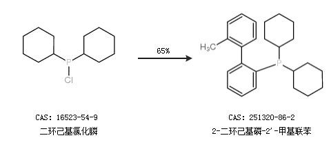 1.通過二環(huán)己基氯化膦合成2-二環(huán)己基磷-2''-甲基聯(lián)苯,收率約65%;