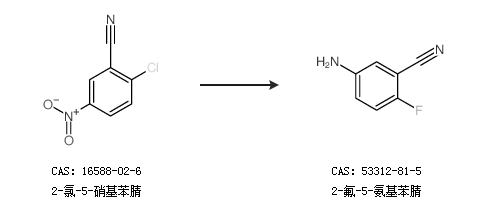 1.通過(guò)2-氯-5-硝基苯腈合成2-氟-5-氨基苯腈